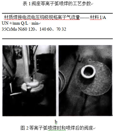 生產(chǎn)實(shí)踐證明,平行閘板閥閥座采用等離子弧噴焊工藝,與氧一乙炔氣焊手工方式焊接工藝相比,不但噴焊層組織致密、顯著提高了質(zhì)量,而且改善了施焊者勞動(dòng)條件,極大提高了生產(chǎn)效率,效果較好