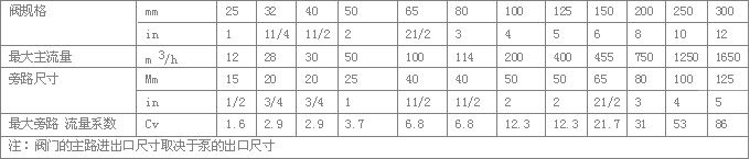 其它旁路尺寸可按要求制作;最大的旁路流量取決于最大的Kv值。